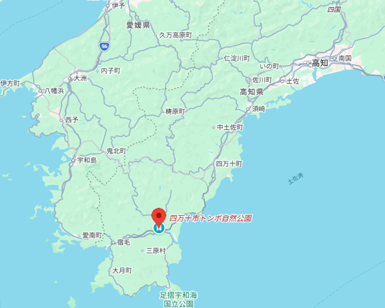 『少年』は杉村光俊さん、1955(昭和30)年3月生まれの71歳。トンボ保護を主目的とする世界初の法人団体「トンボと自然を考える会」を1985(昭和60)年に立ち上げ、常務理事を務めています。日本最後の清流として知られる四万十川のほとりに、雑木林・ため池・沼・小川などをコツコツ整備し、消えつつある里山の再生を年々拡張させてきた「四万十市トンボ自然公園(トンボ王国)」(高知県四万十市具同8055-5=右地図)は50㌶に及ぶ湿地帯。ここには国内で確認されるトンボ203種のうち60~81種のトンボ類が1年を通して息づいています。トンボ好き少年の熱い思いを持ち続ける杉村さんは、その「日本一のトンボ生息地」を生み、守り育て、今も整備・拡張に取り組んでいます。